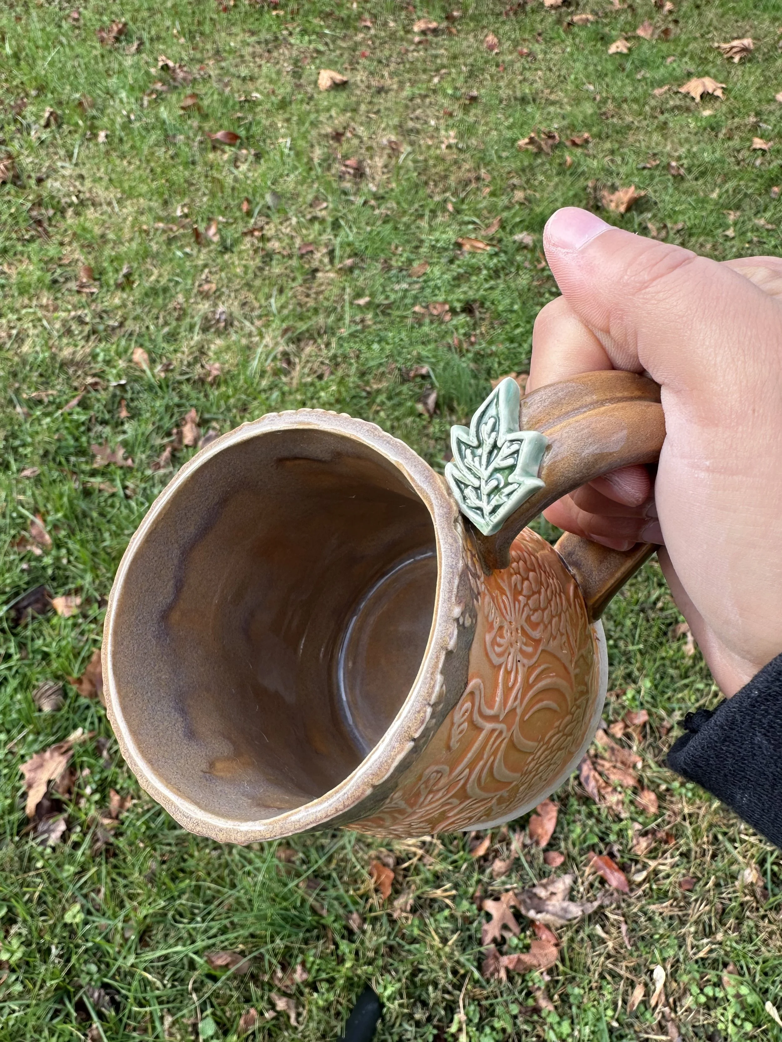 Orange pumpkin mug with leaf details number 1